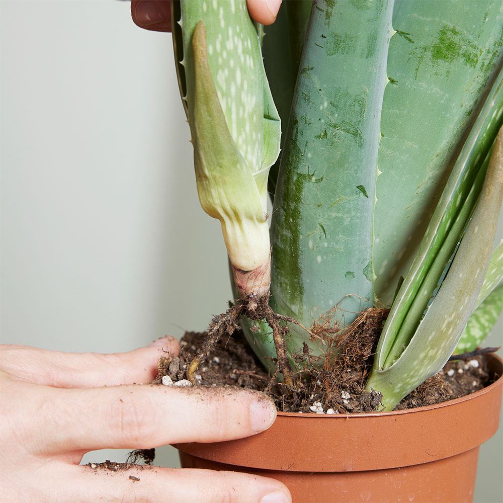 Wie kannst du erkennen, ob dein Aloe-Vera-Steckling Wurzeln entwickelt hat? Ziehe leicht am Steckling – wenn du einen Widerstand spürst, bedeutet das, dass sich Wurzeln gebildet haben. Ab diesem Zeitpunkt musst du die Erde nicht mehr mit der Sprühflasche befeuchten, sondern kannst normal gießen.