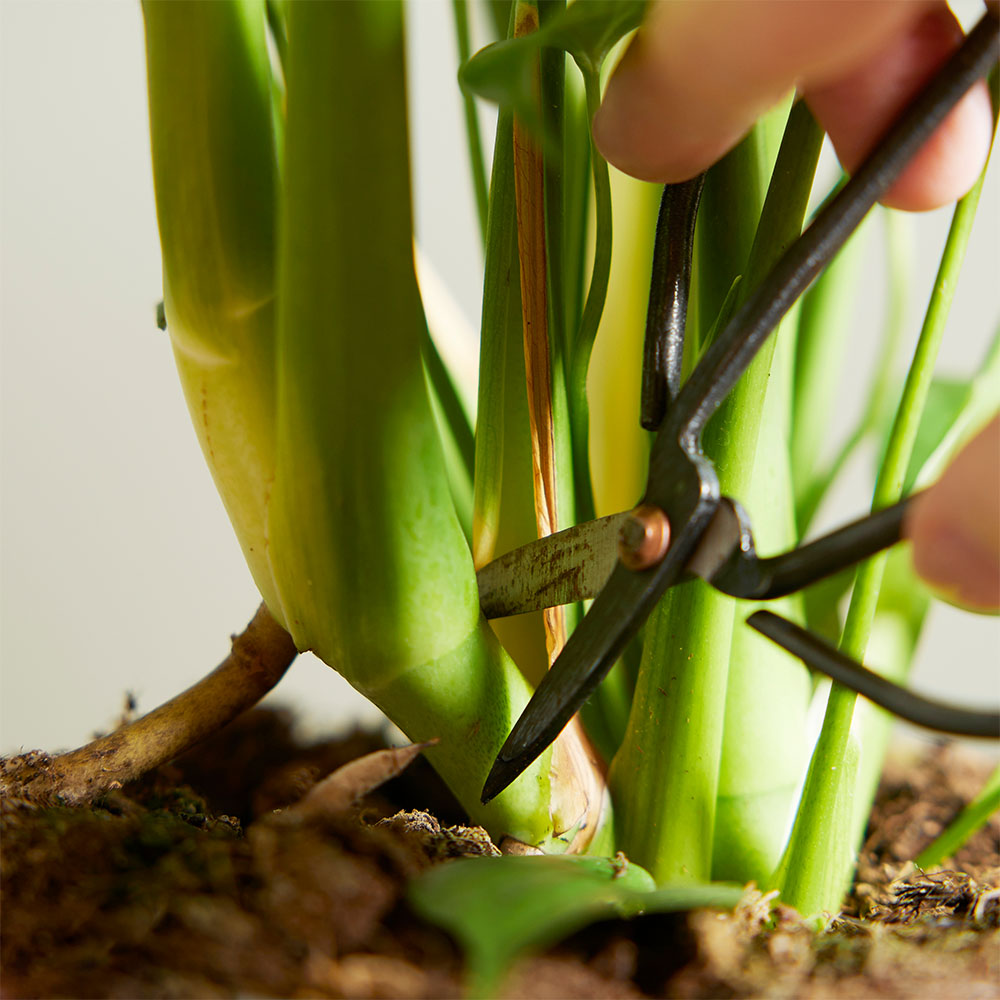 Schritt 1: Schneide den Stängel mit Luftwurzeln vorsichtig von der Monstera ab.
