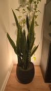 ZimmerpflanzeDiese große Sansevieria Laurentii ist eine schöne, aber auch starke Erscheinung. Sie hat längliche, spitze Blätter in der Farbe Grün. Die Laurentii ist an dem gelben Rand an der Seite des Blattes zu erkennen. Sie ist eine pflegeleichte Zimmerpflanze und eignet sich daher auch ideal für das Büro.